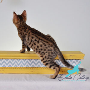 Variability: F5 Savannah cats demonstrate variability in size, body shape, and coloration, although this decreases with each successive generation.